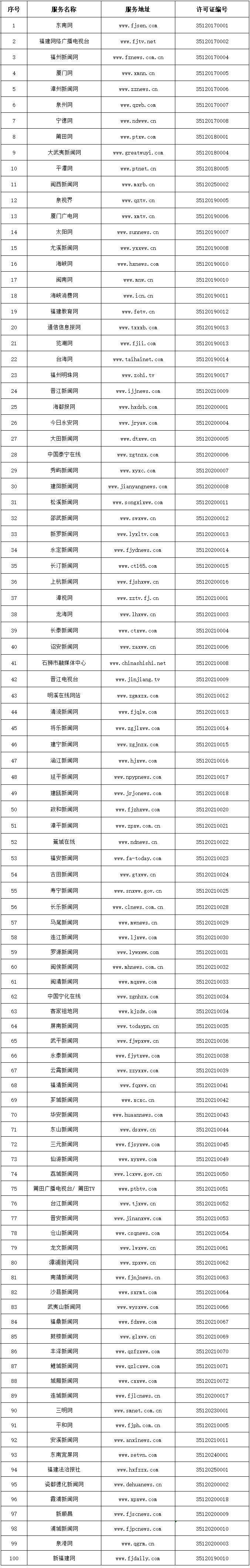 获得互联网新闻信息服务许可的互联网站名单(共100个)